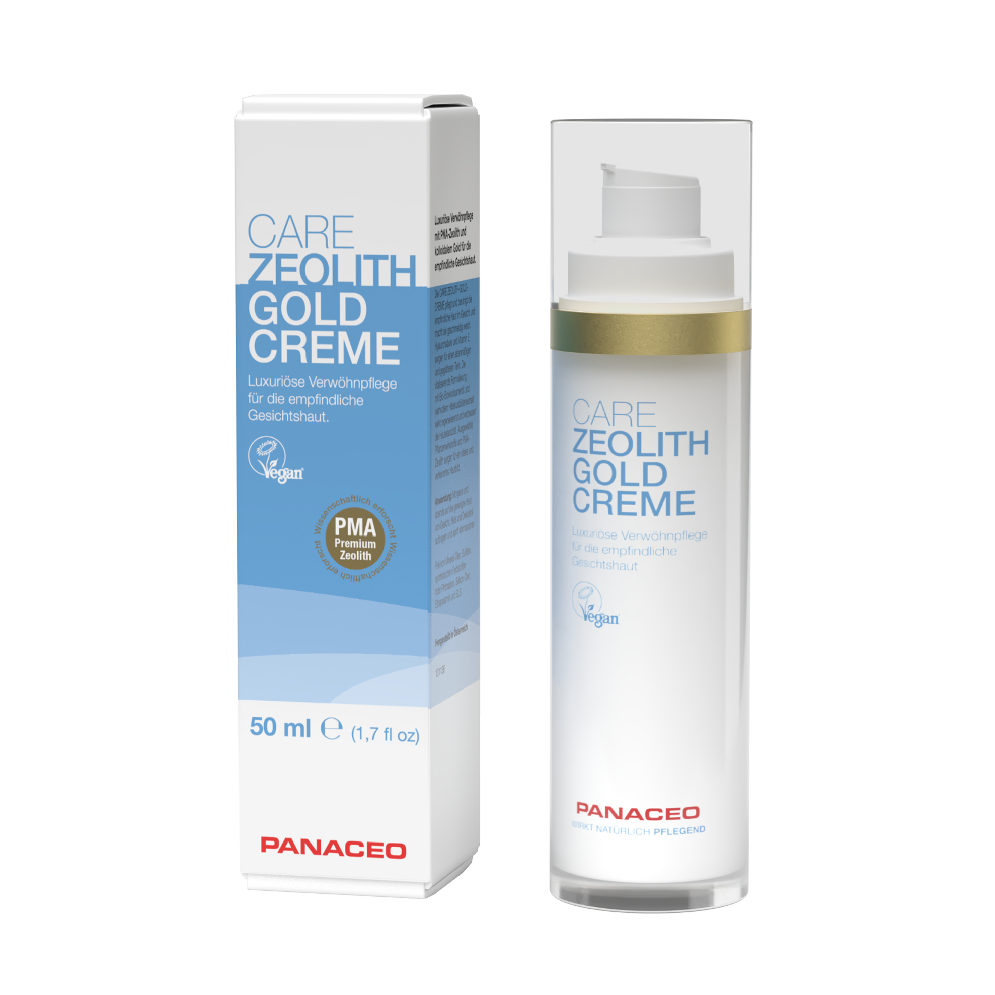 PANACEO ZLATNA KREMA je luksuzna prirodna njega kože s PMA zeolitom®, hijaluronskom kiselinom i finim česticama zlata.
